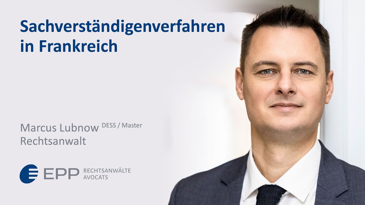Mein Name ist Markus Lubnow. Seit 15 Jahren berate ich deutschsprachige Unternehmen in Frankreich, insbesondere in Sachen Produkthaftung, Bau und Immobilien sowie bei hiermit zusammenhängenden Sachverständigen- und Gerichtsverfahren. Die Kanzlei EPP berät seit mehr als 25 Jahren deutschsprachige Unternehmen in allen unternehmens- und wirtschaftsrechtlichen Belangen in Frankreich und ist an unseren fünf Standorten in Deutschland und in Frankreich zu finden. Über Bedeutung, Folgen und Umgang mit Sachverständigenverfahren in Frankreich informiere ich sie jetzt.